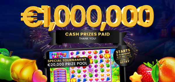 Este evento de 100 horas contará com o mais novo jogo de caça-níqueis da Pragmatic Play, Fruit Party 2. Os jogadores irão competir por uma parte do prêmio total de €20.000 neste torneio especial. Este torneio permite aos jogadores zerar suas pontuações livremente, caso estejam insatisfeitos com sua última classificação na tabela de classificação até o último minuto do evento! Portanto, preparem-se todos os jogadores para esse frenesi de caça-níqueis.