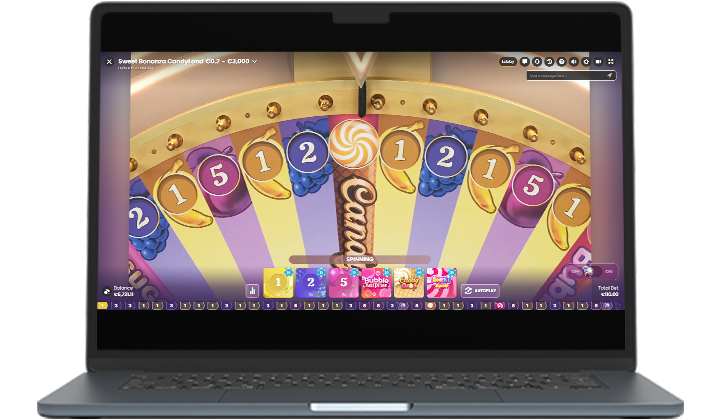 If the wheel lands on Sweet Spins, players are treated to 10 free spins in a live version of our iconic Sweet Bonanza Slot, which now has a supercharged sequel in the form of Sweet Bonanza 1000. Players will start racking up wins once they’ve collected at least eight symbols of the same kind – and the more they collect, the more they win.