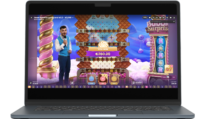 Hosted by our charismatic presenters in a purpose-built studio, Sweet Bonanza CandyLand seamlessly merges physical elements with 3D virtual effects to sweeten the gaming experience. It’s packed with Mega Multipliers, three mouth-watering bonus games, and a massive €500,000 max win for players to unwrap.