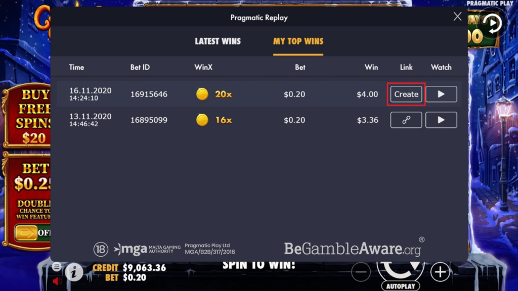 Tính năng “Pragmatic Replay” có thể được đưa ra bằng cách nhấn vào biểu tượng “Replay” vị trí ở góc trên cùng bên phải của trò chơi. Với tính năng này, người dùng có thể xem đi phát lại các vòng chiến thắng của mình. Họ có thể chơi lại các trận thắng mới nhất hoặc trận thắng tốt nhất của mình. Số dư của người chơi bị xóa để đảm bảo tính ẩn danh và tính xác thực của việc chơi lại được bảo mật thông qua biểu tượng “Replay”.